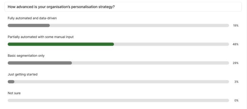 From this poll question above, the majority 48% showed that many businesses are embracing personalisation, most are still navigating the balance between automation and human oversight. This is where the second key takeaway becomes crucial: personalisation must be rooted in respect and transparency.