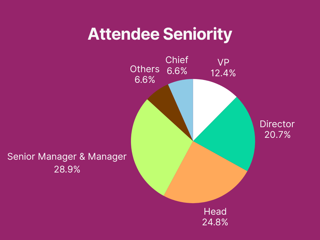 The Summit attracted senior-level attendees, with nearly 94% holding mid-to-executive roles. This reflects the strategic nature of data initiatives across sectors.